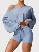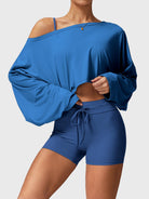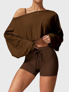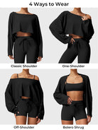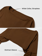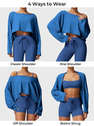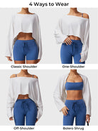 The Alison Off Shoulder Top offers versatile styling with a wide neckline for off-shoulder, one-shoulder, or classic looks. Its draped dolman sleeves create a flowy silhouette with full arm coverage, while ultra-soft, lightweight fabric ensures all-day comfort. Perfect for the gym or a night out, pair it with Alison leggings, shorts, or jeans for a chic, effortless vibe.