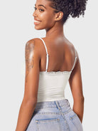 Meet the Annabely Tank—a sexy lace-trimmed square neck top with adjustable spaghetti straps. Made from ultra-soft, double-layer fabric, this high-stretch tank is perfect for layering or wearing solo, making it a stylish choice for any occasion.